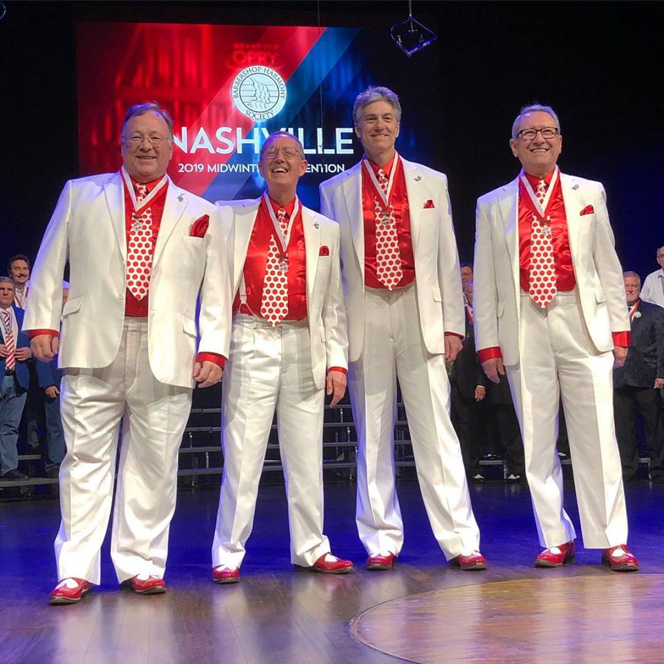 The Carolinas District was well represented at the Barbershop Harmony Society’s 2019 Midwinter Convention in Nashville, TN. Let’s Sing! took 2nd place out of 24 quartets in the International Senior Quartet contest, missing out the Gold by just 0.2 average points. The winning quartet was DoubleDouble from the Ontario District.